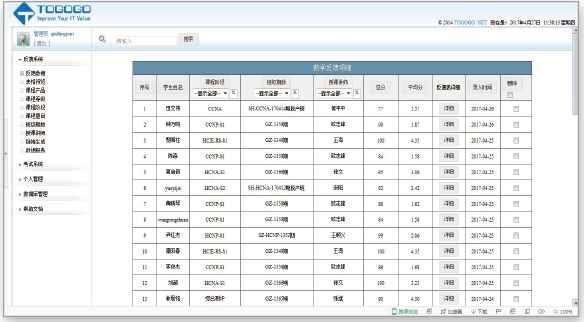自建獨立教學教務管理系統,從報名到培訓考試,班主任,教務和考務三大職能職位專人全程為學生提供貼心服務。班主任跟進每一個班級的學習狀 態,學習需求,組織班級活動,倡導勞逸結合并團結班級凝聚力。教務考務,合理安排上課與輔導,耐心引導考試流程,保障學員的利益和監管教學質 量。騰科自主開發的在線教學評估系統,實行階段測評,每課多評的方式,學生的滿意度與教學掛鉤。