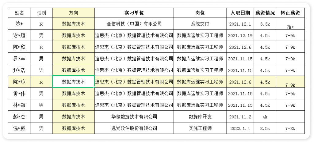 實(shí)習(xí)就業(yè)跟進(jìn):輸出實(shí)習(xí)就業(yè)一覽表,包括學(xué)生姓名,院校,專(zhuān)業(yè),電話,郵箱,實(shí)習(xí)崗位,實(shí)習(xí)公司,薪資,以及轉(zhuǎn)正薪資等;